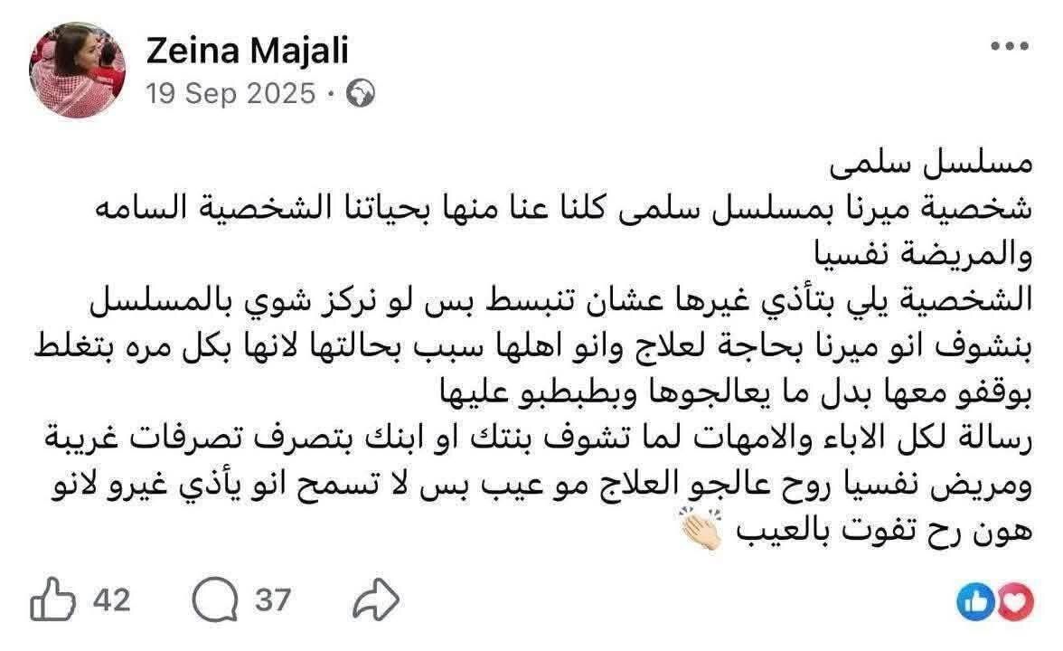 وأحدثت كلمات المجالي، انقساماً بين المتابعين، الذين وجودوا فيها "رسالة مأساوية" تنبأت بما سيحدث معها لاحقاً، خاصة وأن المحامية الأردنية تحدثت من خلال المنشور، عن "الشخصيات السامة" التي تسعى لتحقيق مصالحها الشخصية على حساب الآخرين، محذرة الآباء والأمهات من تجاهل تصرفات أبنائهم، وضرورة تقديم الدعم والعلاج اللازمين قبل تطور الأمور إلى مراحل لا يمكن السيطرة عليها.