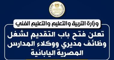 الثلاثاء، 27 يناير 2026 11:15 صفي إطار تنفيذ تكليفات القيادة السياسية بمواصلة التوسع في نموذج المدارس المصرية اليابانية، وتعزيز الكوادر القيادية الداعمة لهذا النموذج التعليمي المتميز، أعلنت وزارة التربية والتعليم والتعليم الفني فتح باب التقديم لشغل وظائف مديرين ووكلاء بالمدارس المصرية اليابانية، وذلك تزامنًا مع التوسع في أعداد المدارس ودخول مدارس جديدة الخدمة خلال العام الدراسي المقبل.