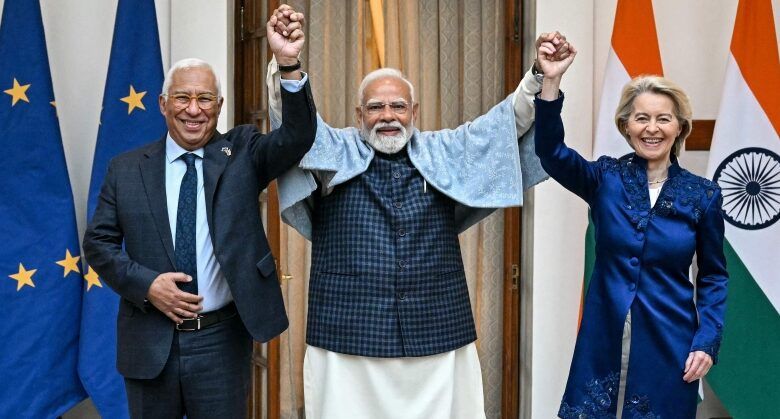 وقالت في بيان من نيودلهي حيث تلتقي رئيس الوزراء ناريندرا مودي «تصنع أوروبا والهند اليوم التاريخ»، مضيفة «لقد أبرمنا أهم اتفاقية على الإطلاق. أنشأنا منطقة تجارة حرة تضم ملياري شخص سيستفيد منها الطرفان».