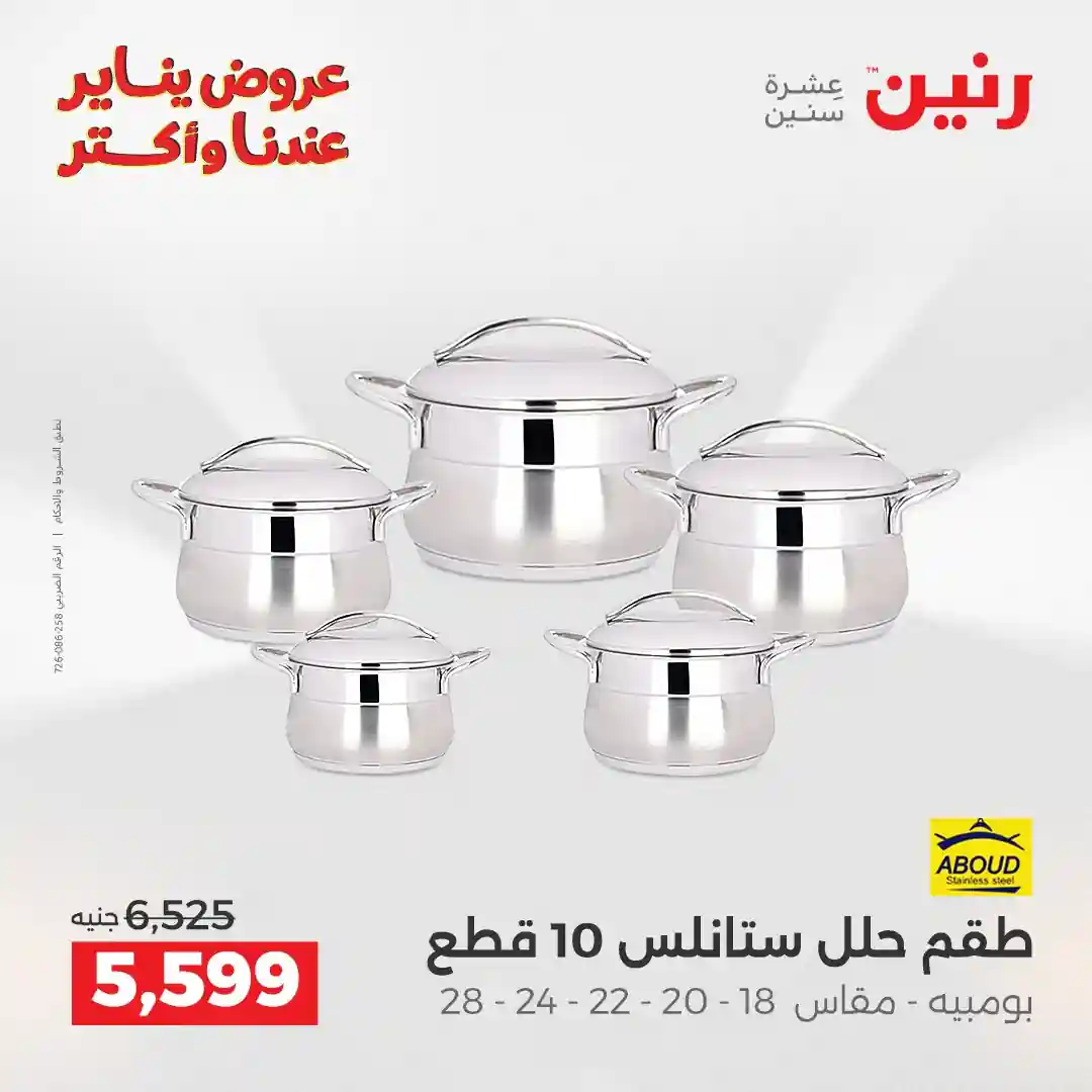 تسرى عروض رنين من يوم الخميس للسبت 29 – 30 – 31 يناير 2026 للادوات المنزلية بجميع الفروع
