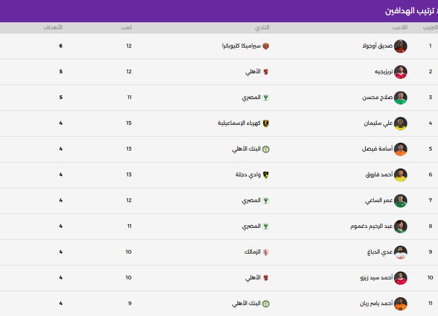 ترتيب هدافي الدوري المصري اليوم