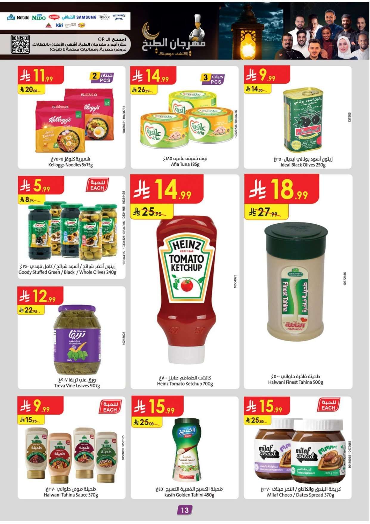 الدانوب الأسبوعية الأربعاء 28-01-2026 الموافق 9 شعبان 1447هـ و تحتوي علي تشكيلة غذائية تبدأ بقطع لحم الضأن السواكني وسمك السلمون النرويجي والجبن الشيدر المعتق وزيت الذرة النقي مع توفر التوت الأزرق وتكتمل بالأجهزة المنزلية و يضم صانعة القهوة و جهاز تبخير الأطعمة و مكينة فرم البصل و شواية الساندوتشات السريعة و مروحة تبريد