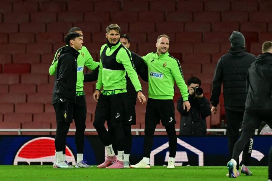 تدرب لاعبو نادي كيرات ألماتي الكازاخستاني على ملعب تمهيداً لمواجهة مضيفة أرسنال متصدر البريميرليغ مساء الأربعاء.