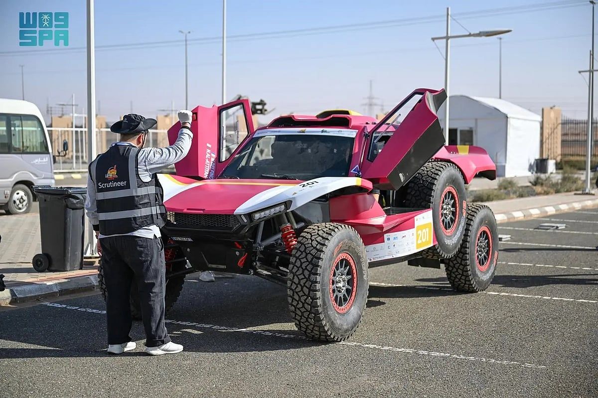 تشهد مركبات المتسابقين المشاركين في رالي حائل تويوتا الدولي 2026 لفئتي السيارات والدراجات النارية، اليوم منذ ساعات الصباح الأولى، عمليات الفحص الفني التي تُجرى في المقر المخصص من قبل الاتحاد السعودي للسيارات والدراجات النارية، وذلك ضمن الاستعدادات لانطلاق منافسات مراحل الرالي.