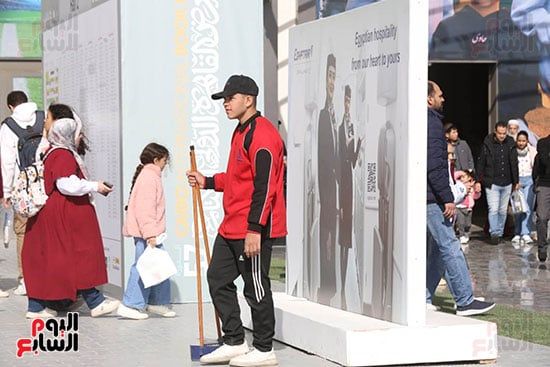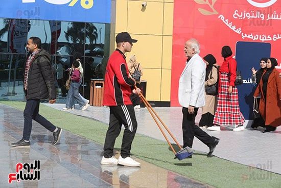 يقفون في كل مكان عند المداخل، في الساحات المفتوحة، داخل الأروقة، وبين أجنحة دور النشر، يعرفون مهامهم بدقة لافتة، يتحركون بهدوء، يراقبون الأرض قبل أن تلتقطها عين الزائر، ويتدخلون سريعًا حتى لا تعكر مخلفات صغيرة صفو مشهد ثقافي كبير.