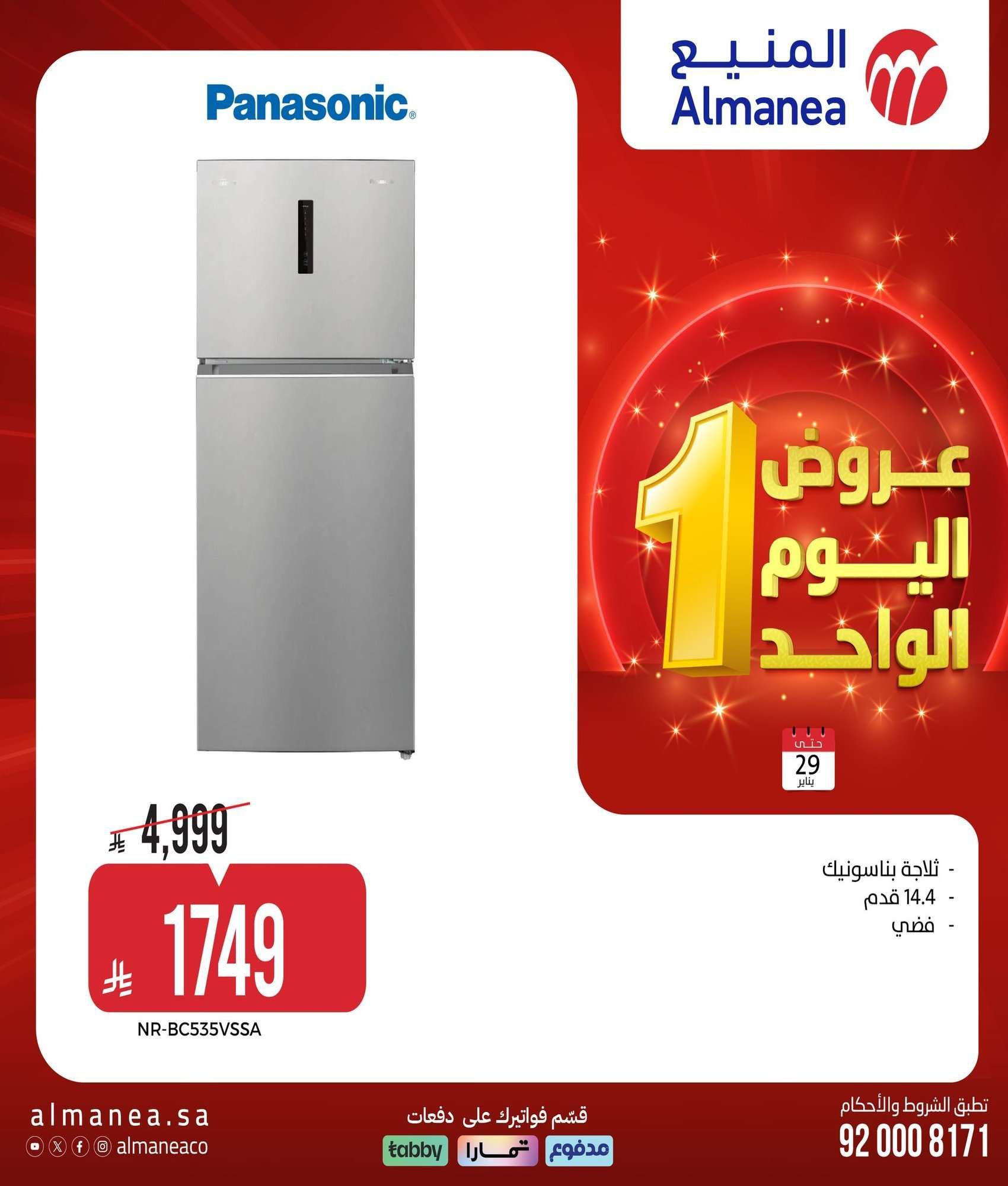 - ثلاجة بناسونيك 14.4 قدم فضي 1749 ريال
