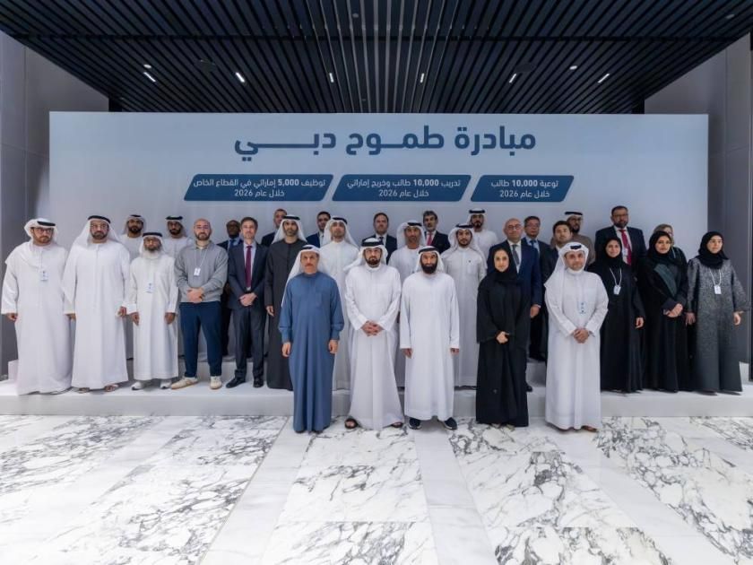 والتُقِطت لسموّه صورة جماعية مع الشركاء في مبادرة «طموح دبي»، الهادفة إلى تمكين الطلبة والخريجين الإماراتيين، وإعدادهم لسوق العمل، وتوسيع نطاق التوظيف في القطاع الخاص، في إطار تكاملي يجمع الجهات الحكومية والمؤسسات التعليمية وشركات القطاع الخاص ضمن منظومة واحدة تهدف إلى تطوير رأس المال البشري الوطني وتعزيزه وفق أولويات التنمية المستدامة في دبي.