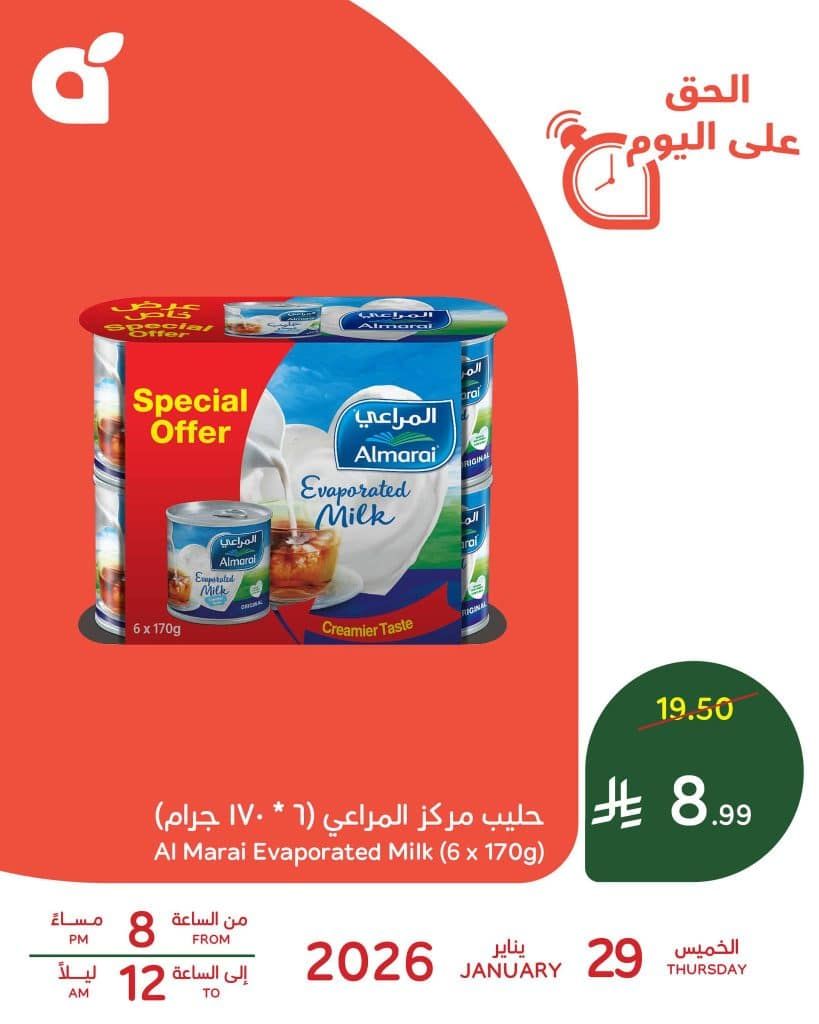 بنقدم ليكم اليوم احدث عروض بنده الخميس 29 يناير 2026 الموافق 10 شعبان 1447هـ و تحتوي علي حليب المراعي المركز استمتعو بكمية اكثر و بسعر اوفر في صفقة حصرية متاحة اليوم فقط و لساعات محدودة فقط ابقوا معنا ليصلكم كل جديد علي موقعكم عروض توداي