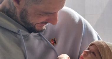 احمد الفيشاوي يحمل طفلاً