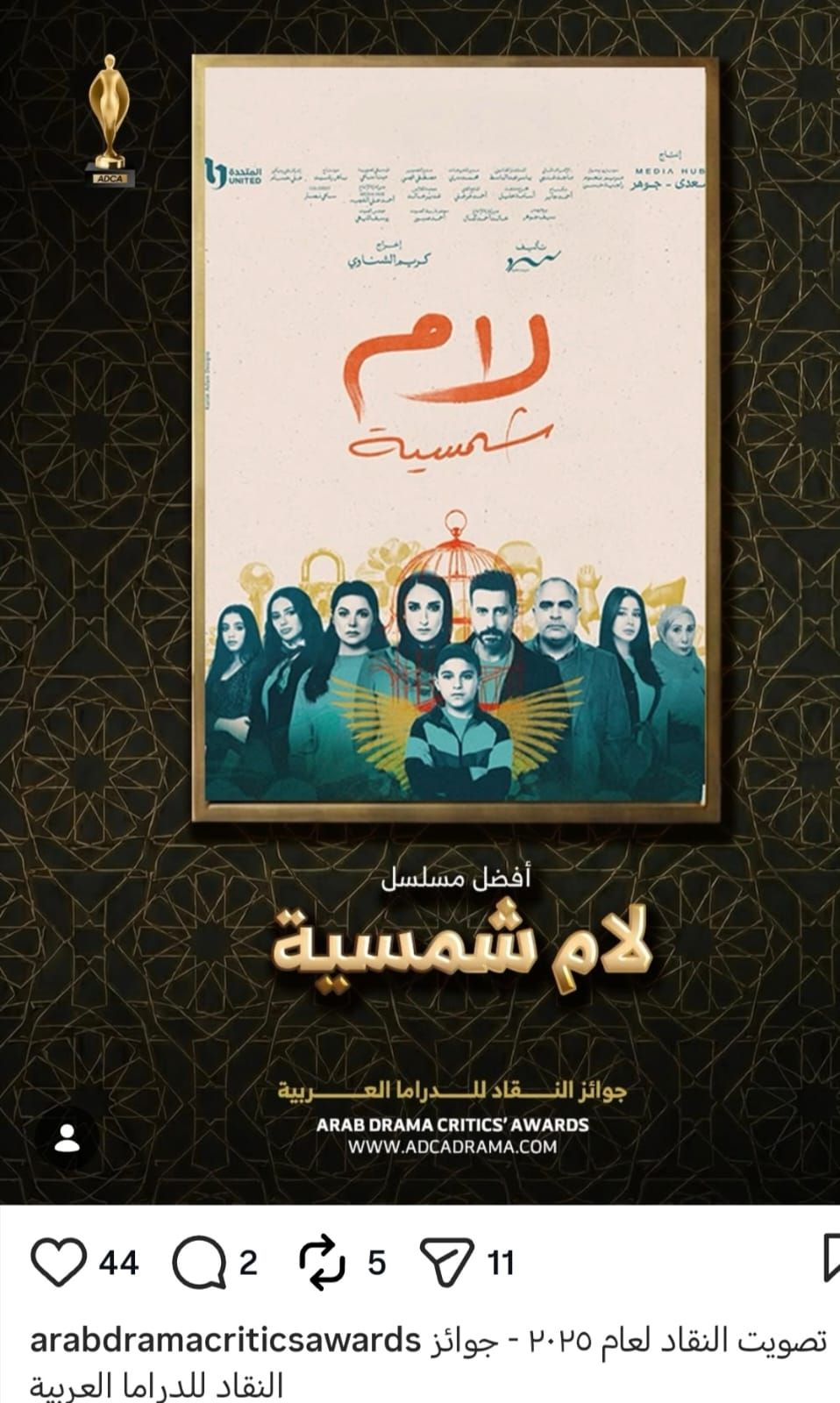 حققت مسلسلات الشركة المتحدة للخدمات الإعلامية نجاحا كبيرا في جوائز النقاد للدراما العربية لعام 2025، فقد توج "لام شمسية" بلقب أفضل مسلسل، متفوقًا على عدد من الأعمال العربية المرشحة، وأيضا مسلسل كارثة طبيعية.