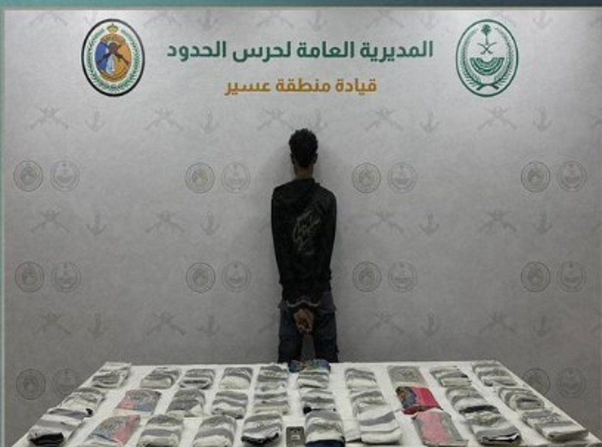 قبضت الدوريات البرية لحرس الحدود في قطاع ظهران الجنوب بمنطقة عسير على مخالف لنظام أمن الحدود من الجنسية الإثيوبية، لتهريبه (36) كيلوجراما من نبات القات المخدر.