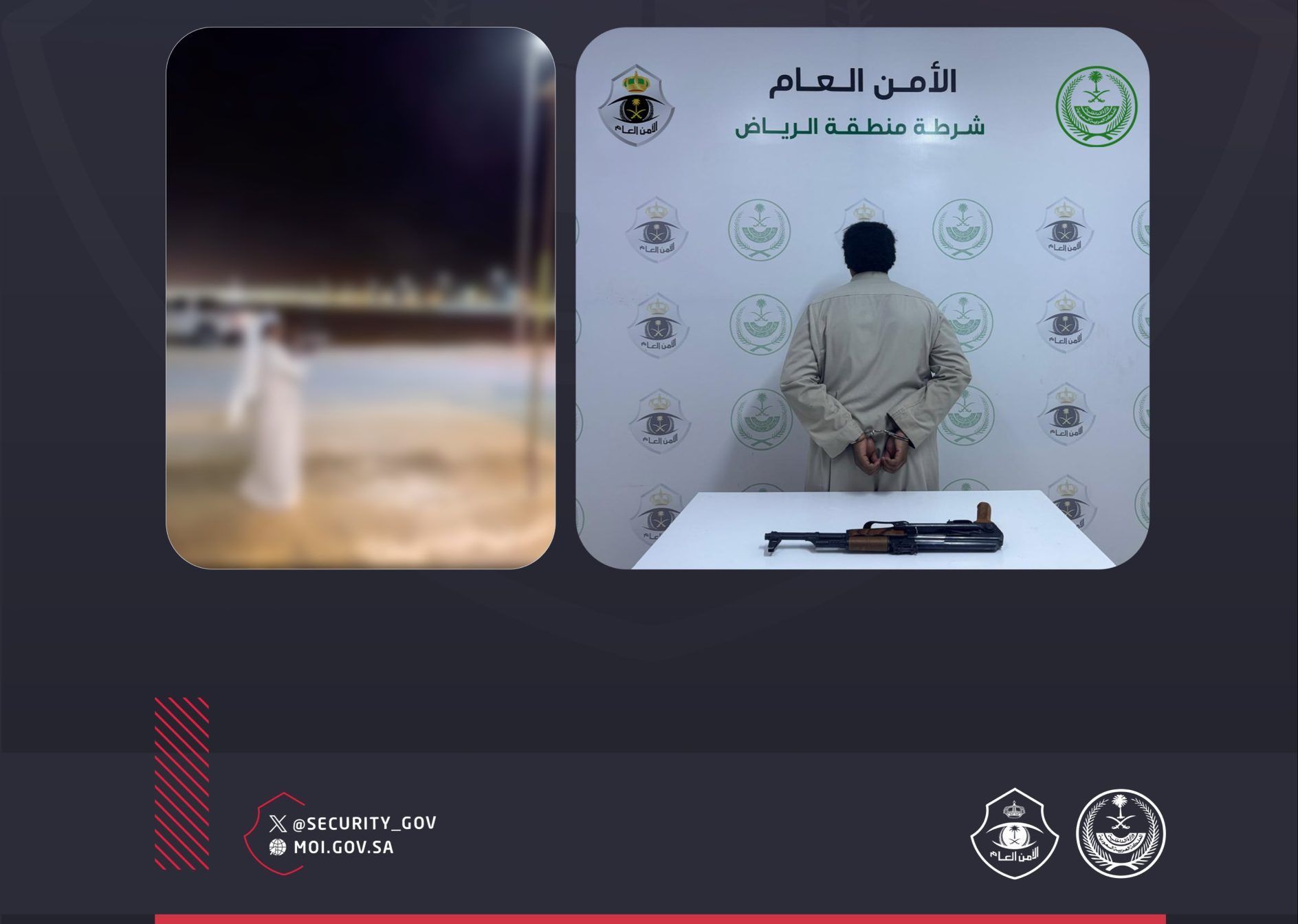 قبضت شرطة محافظة وادي الدواسر بمنطقة الرياض على مواطن ظهر في محتوى مرئي وهو يطلق النار من سلاح ناري في مكان عام، ما عرّض حياة الآخرين للخطر.