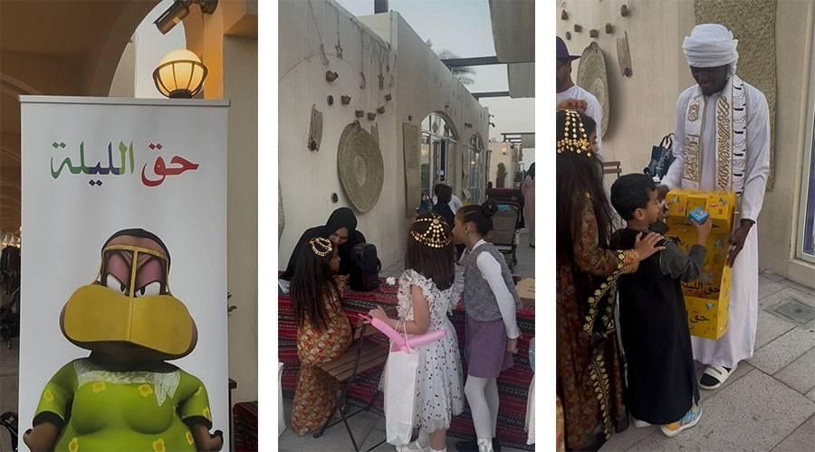 خصص سوق الميناء في أبوظبي، ركناً بمناسبة «حق الليلة»، التي تُصادف ليلة النصف من شهر شعبان، توافد إليه الزوار مع أطفالهم للاستمتاع بالأنشطة الموجهة للأطفال، وسط أجواء عائلية تراثية.