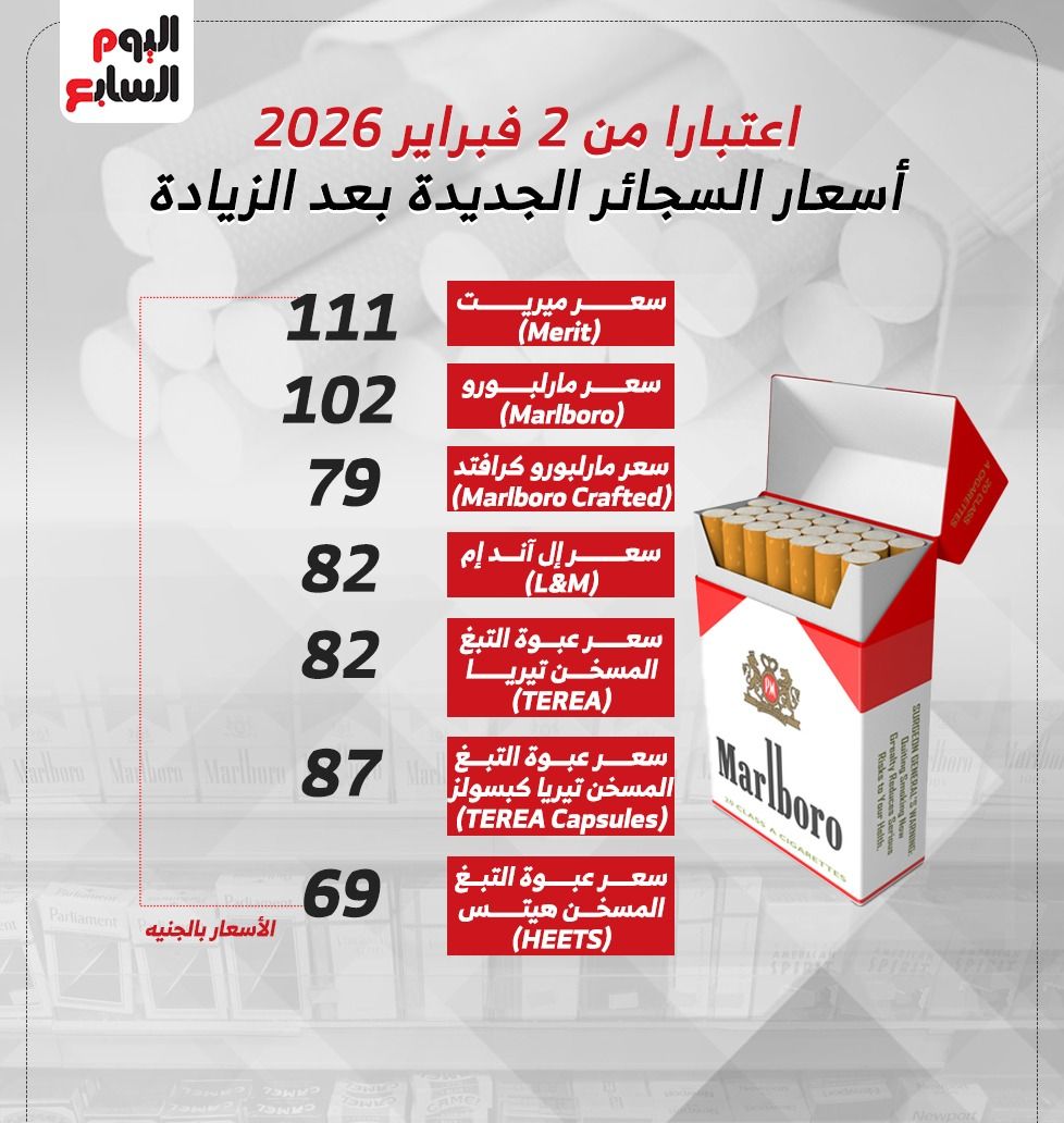 الأحد، 01 فبراير 2026 07:49 مأعلن ابراهيم إمبابي، رئيس شعبة الدخان في اتحاد الصناعات المصرية، في بيان له مساء اليوم عن زيادة جديدة في أسعار السجائر الأجنبية من شركة فيليب موريس مصر، لافتا إلى أن الزيادة التي ستطبق اعتبارا من غد الاثنين في سجائر مارلبورو بلغت 5 جنيهات وفى سجائر ميريت 6 جنيهات فيما ثبتت بقية الأصناف.
