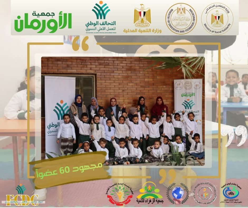 الأحد، 01 فبراير 2026 09:00 مأقامت جمعية الأورمان، عضو التحالف الوطني للعمل الأهلي التنموي، من خلال أذرعها التنفيذية الميدانية وبالتعاون مع جمعية منتدى شباب البلينا، جمعية تنمية المجتمع بالحرجة بحري، جمعية الزهراء للتنمية، جمعية أبناء البلد لتنمية المجتمع، وجمعية الشبان العالمية، ووفقًا لبروتوكول تشغيل عدد (47) مركز تنمية أسرة وطفل الموقَّع بين وزارة التضامن الاجتماعي، ووزارة التربية والتعليم، ووزارة التنمية المحلية، والتحالف الوطني للعمل الأهلي التنموي، احتفالية ختام الفصل الدراسي الأول.