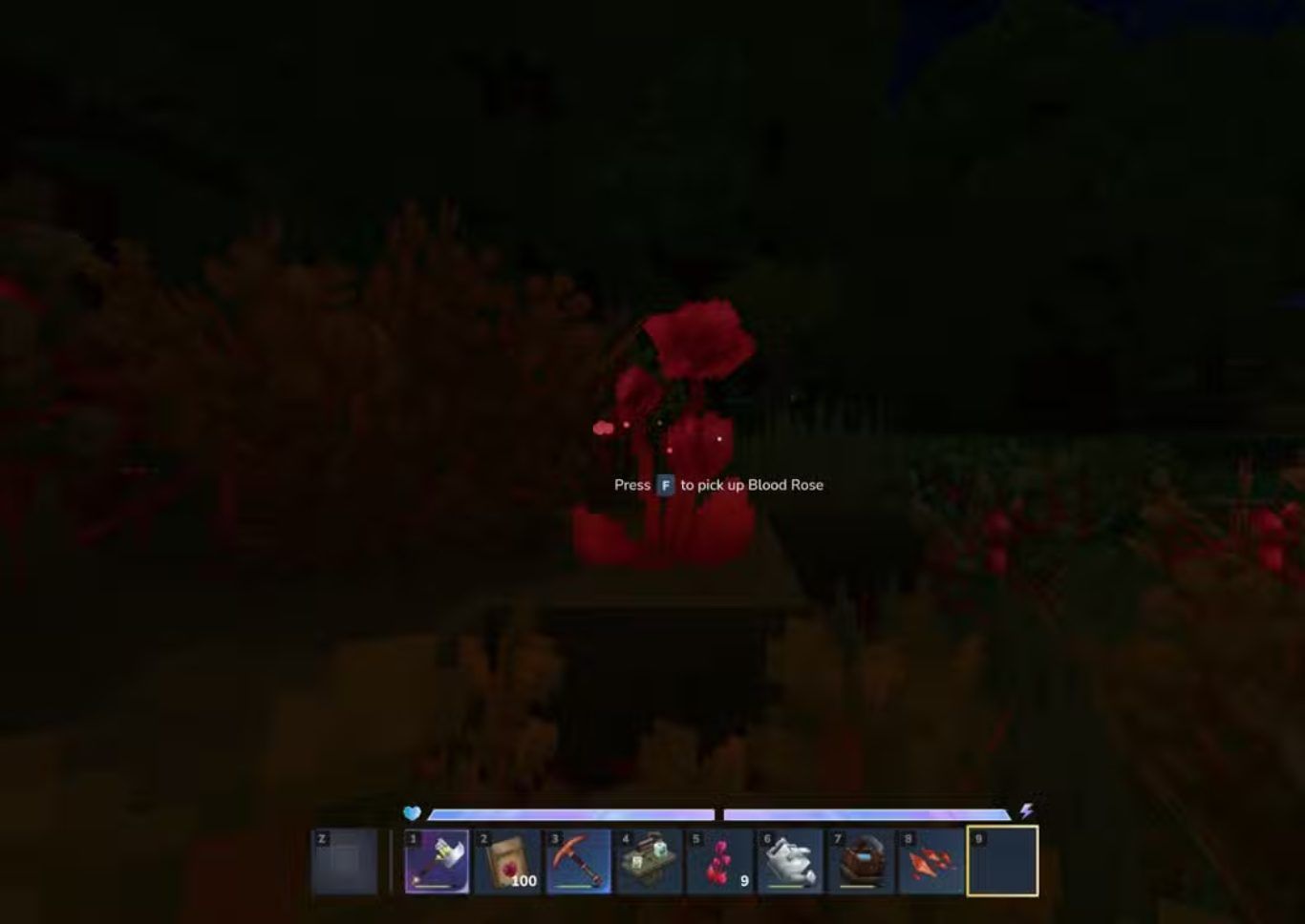 ينصح بالبحث عن Blood Rose داخل هذه المنطقة خلال فترة الليل حيث يصبح التوهج الأحمر الخافت للنبتة واضحا للغاية مقارنة بالنهار مما يسهل رصدها من مسافات بعيدة.