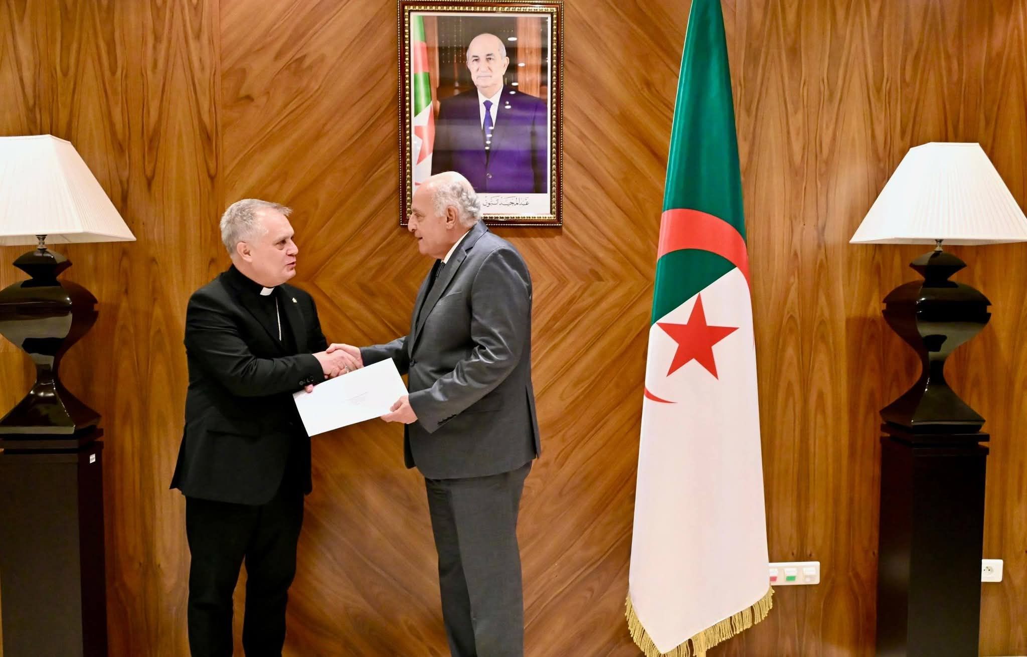 وحسب بيان وزارة الشؤون الخارجية، فقد سلّم خافيير هيريرا كورونا لوزير الدولة نسخًا من أوراق اعتماده بصفته سفير حاضرة الفاتيكان الجديد لدى الجزائر.