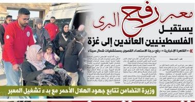 تنشر اليوم السابع فى عددها الصادر غدا، تفاصيل هامة حول العديد من الأحداث الجارية على الساحتين الداخلية والخارجية: معبر رفح البرى يستقبل الفلسطينيين العائدين إلى غزة