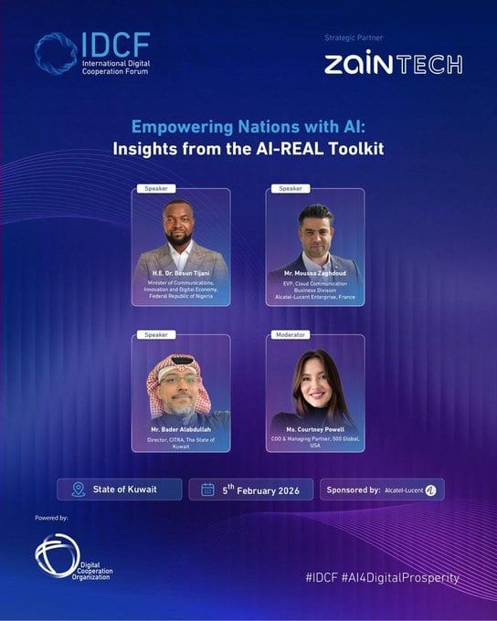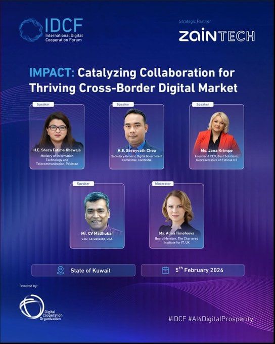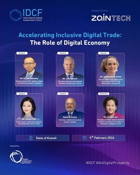 تشهد فعاليات المنتدى الدولى للتعاون الرقمى في نسخته الثانية IDCF والذى تعقده منظمة التعاون الرقمي في دولة الكويت خلال الفترة من 4 إلى 5 فبراير 2026، عددا كبيرا من الجلسات وورش العمل بحضور وزراء وصنّاع سياسات ورؤساء تنفيذيين ورواد أعمال وقادة من المجتمع المدني، وممثلين عن أكثر من 60 دولة، بهدف تعزيز التعاون الدولي بشأن مستقبل الاقتصاد الرقمي.