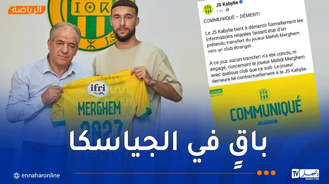 وأوضحت إدارة النادي، في بيان نشرته اليوم الاثنين، أنه لم يتم الشروع أو إتمام أي صفقة انتقال تخص اللاعب مهدي مرغم، إلى أي نادٍ على الإطلاق، مؤكدة في الوقت ذاته أن اللاعب لا يزال مرتبطًا بعقد رسمي مع نادي شبيبة القبائل.