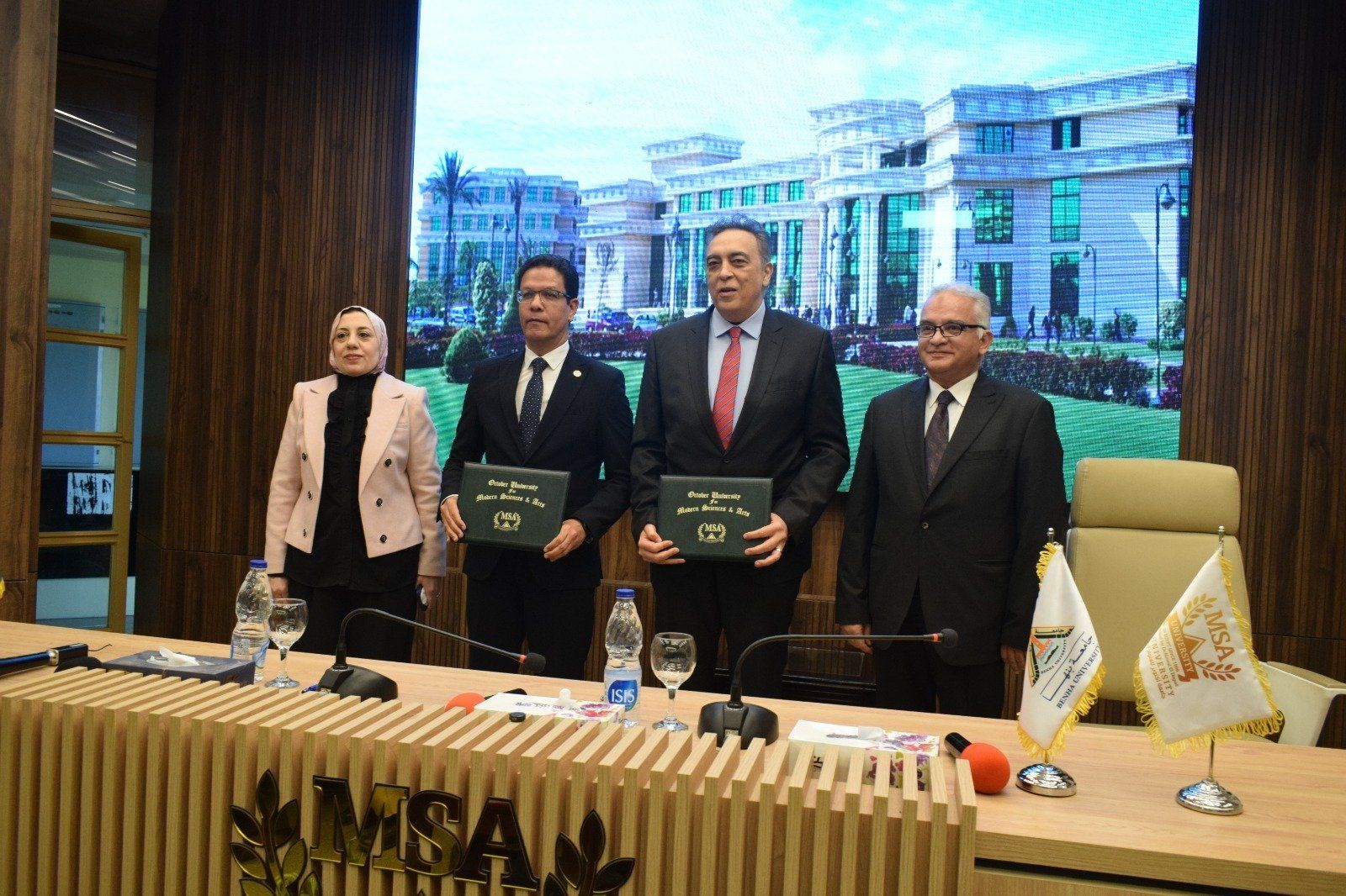 الثلاثاء، 03 فبراير 2026 03:20 موقع الدكتور ناصر الجيزاوى رئيس جامعة بنها، والدكتور نادر نبيل البكل رئيس جامعة أكتوبر للعلوم الحديثة والآداب (MSA) ، بروتوكول تعاون بين الجامعتين في المجالات الأكاديمية والبحثية ذات الاهتمام المشترك، جاء ذلك بحضور الدكتورة نوال الدجوى رئيس مجلس أمناء جامعة أكتوبر للعلوم الحديثة والآداب (MSA) ، والدكتورة جيهان عبد الهادي نائب رئيس جامعة بنها لشئون الدراسات العليا والبحوث، وعدد من عمداء وأعضاء هيئة التدريس بجامعة أكتوبر للعلوم الحديثة والآداب.