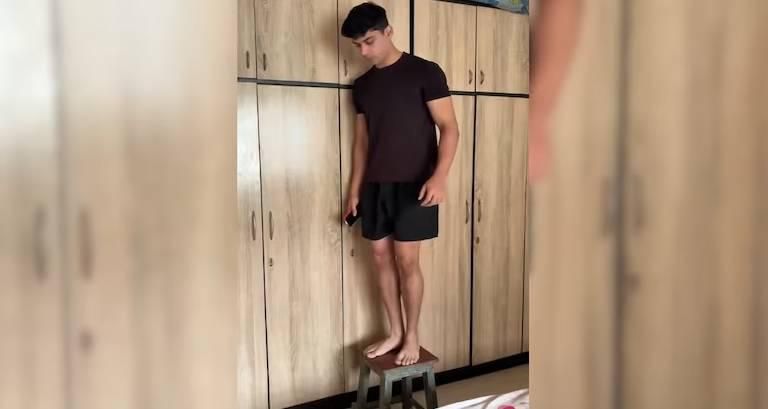 أثار الشاب الهندي تشيراج والونج ضجة على مواقع التواصل الاجتماعي بعد أن أكمل 10 آلاف خطوة يومية بطريقة غير معتادة، مستخدماً كرسياً خشبياً صغيراً داخل غرفته.