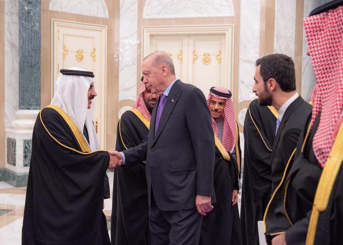 استقبل صاحب السمو الملكي الأمير محمد بن سلمان بن عبدالعزيز آل سعود ولي العهد رئيس مجلس الوزراء، بالديوان الملكي في قصر اليمامة بالرياض مساء اليوم، فخامة الرئيس رجب طيب أردوغان رئيس جمهورية تركيا.