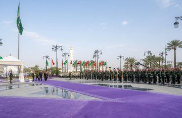 وقد أجريت لفخامته مراسم الاستقبال الرسمية.