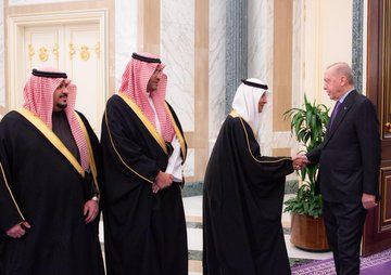 ورحب سمو ولي العهد بفخامة رئيس جمهورية تركيا في المملكة، فيما عبر فخامته عن سعادته بهذه الزيارة ولقائه سمو ولي العهد.