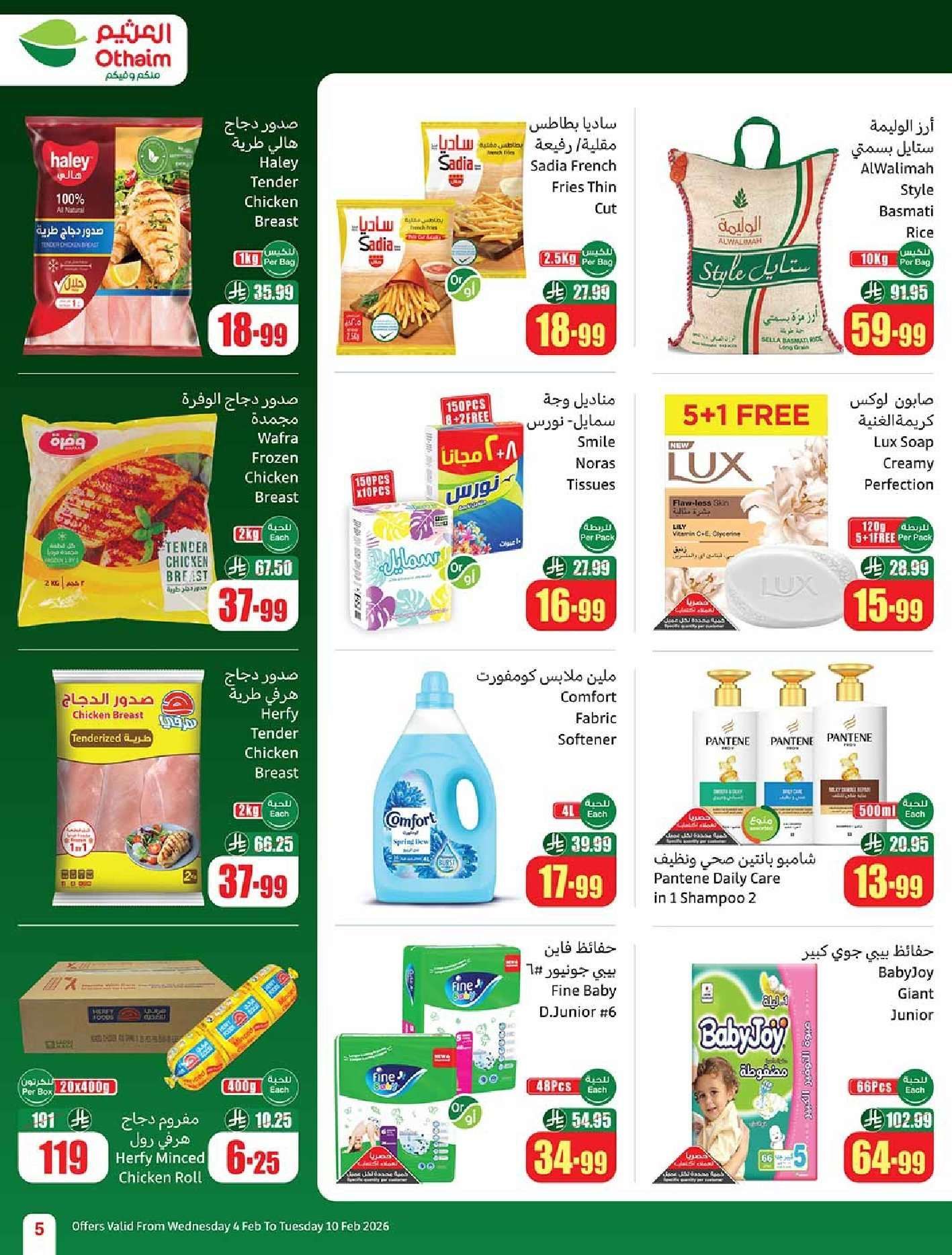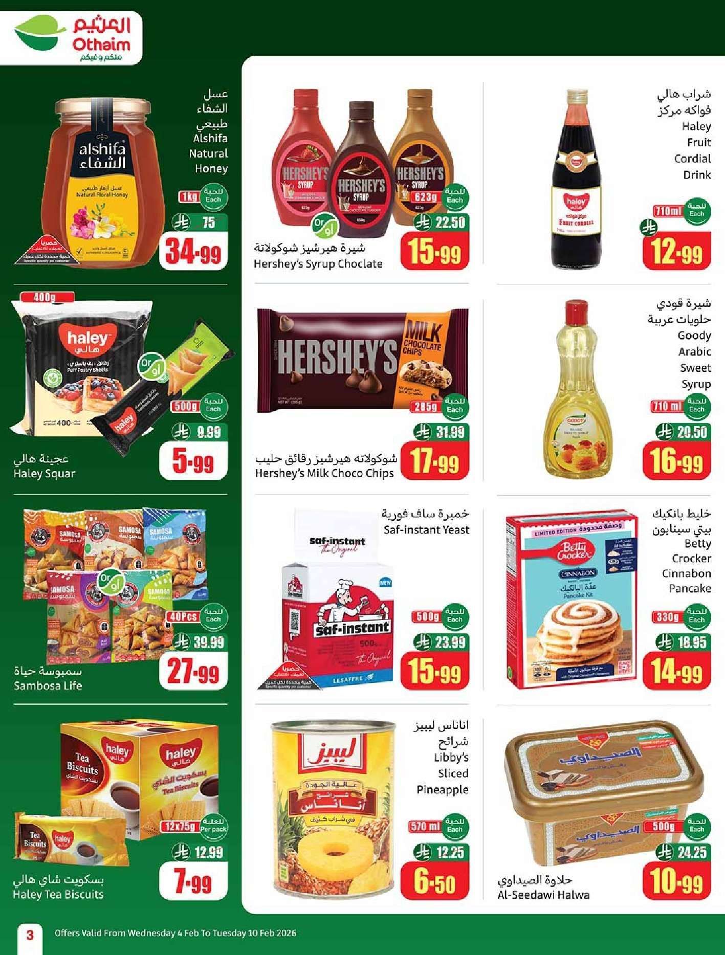 بتوفر ايضا عروض اسواق العثيم هذا الاسبوع علي المنتجات الغذائية و تشمل دجاج ساديا وأرز الوليمة وزيت ليزا وسكر حلواني وشاي الكبوس وحليب نادك وجبنة كرافت ومعجون طماطم وزيت زيتون وتفاح ولحم مفروم احسبها صح كاشك بجيبك