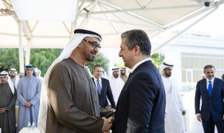 وبحث سموه مع مسرور بارزاني - خلال اللقاء الذي جرى في مجلس قصر البحر في أبوظبي - مختلف جوانب العلاقات الأخوية بين دولة الإمارات العربية المتحدة وجمهورية العراق عامة، وإقليم كردستان خاصة، وسبل تنمية التعاون بما يعود بالخير على الشعبين الشقيقين، ويسهم في تحقيق تطلعاتهما نحو التنمية والازدهار.