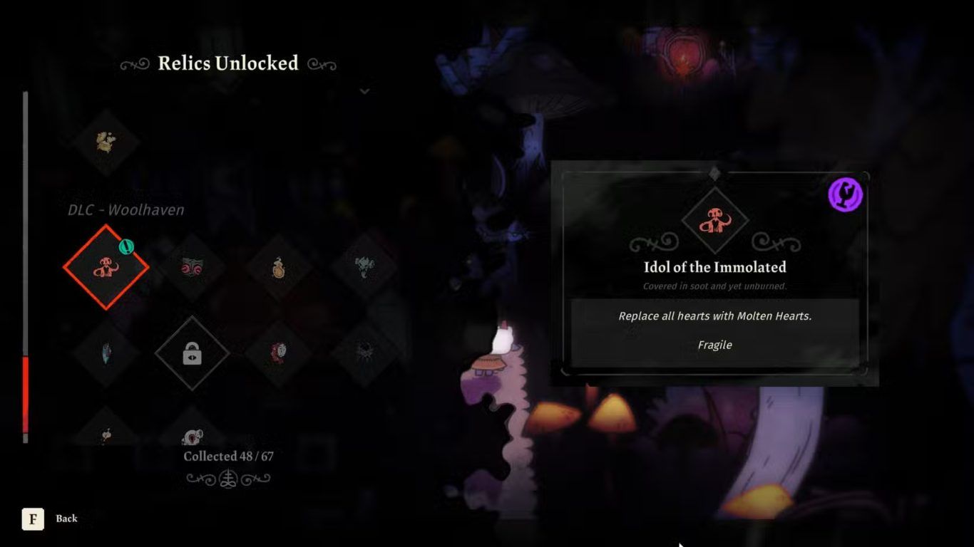 عند استخدام أول عنصر Rotten Eye Of The Witness داخل لعبة Cult Of The Lamb Woolhaven DLC يتم فتح عنصر Relic جديد يعرف باسم Idol Of The Immolated. يمثل هذا العنصر مرحلة مهمة في مسار التقدم المرتبط بمحتوى Woolhaven حيث يضيف آلية لعب مختلفة تعتمد على المخاطرة والتأثير المباشر أثناء القتال.