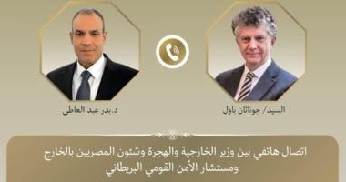 بحث الدكتور بدر عبد العاطى وزير الخارجية والهجرة وشئون المصريين بالخارج فى اتصال هاتفى مع جوناثان باول مستشار الأمن القومى البريطانى مستجدات الأوضاع الإقليمية.