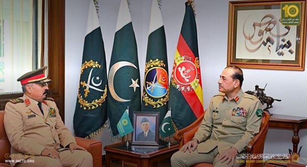 استقبل قائد الجيش الباكستاني المشير سيد عاصم منير، اليوم، بمقر القيادة بالعاصمة إسلام آباد، أمين عام التحالف الإسلامي العسكري لمحاربة الإرهاب اللواء الطيار الركن محمد المغيدي.