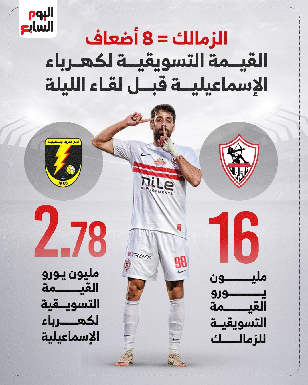 الزمالك = 8 أضعاف القيمة التسويقية لكهرباء الاسماعيلية