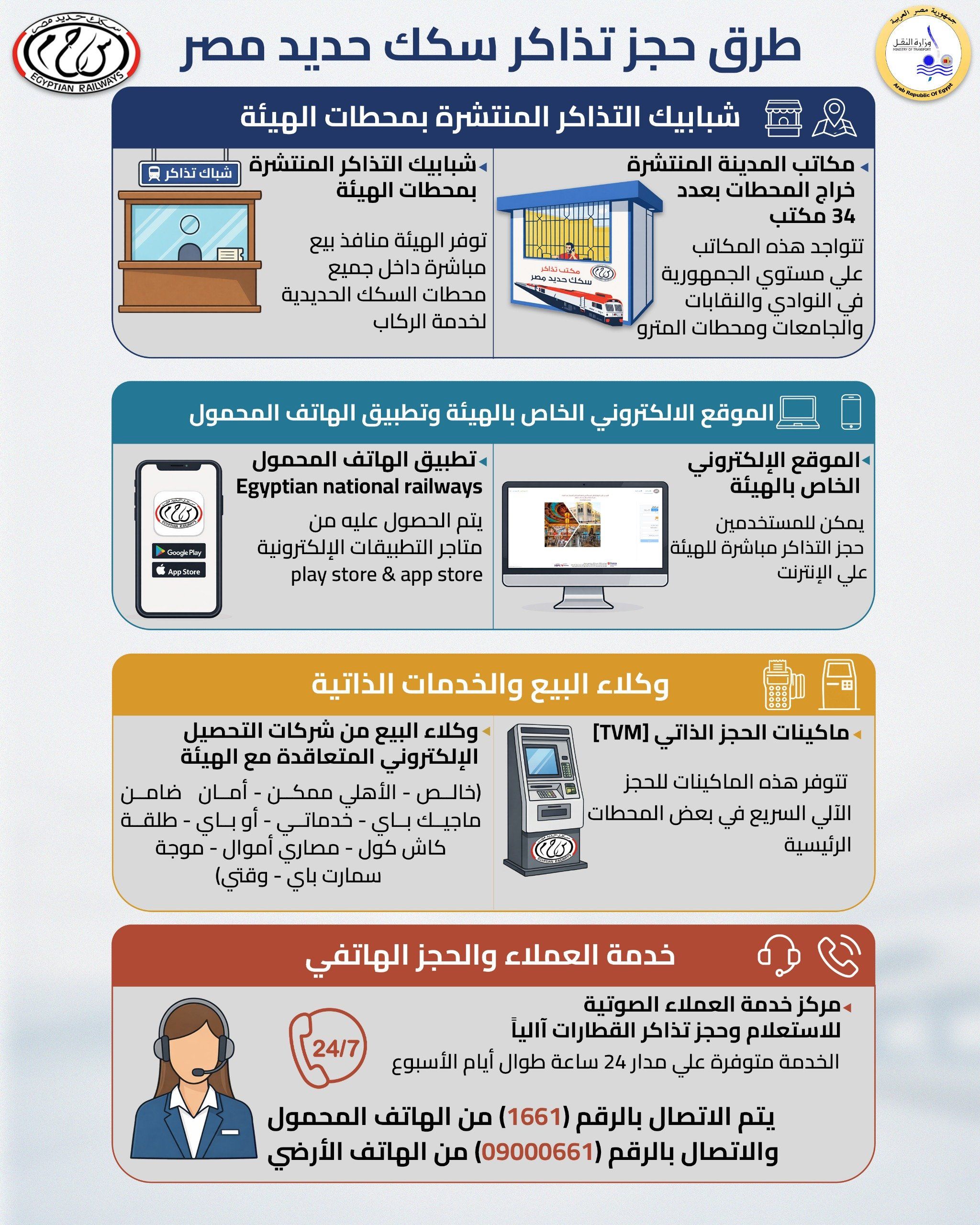 في المقابل، يبدأ تشغيل قطار رقم 1091 بالعربات المختلطة من أسوان إلى القاهرة، اعتباراً من يوم الأحد الموافق 8 فبراير 2026.