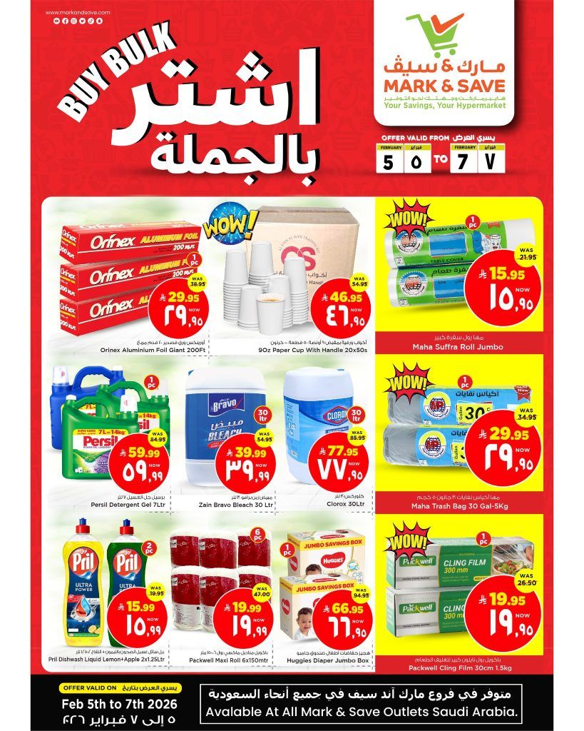 نقدم لكم احدث مارك اند سيف الاسبوعية الخميس 5 فبراير 2026 الموافق 17-8-1447هـ و تحتوي علي زيت العربي النباتي وزيت شمس وزيت عافية وزيت دلال وزيت زهرة وزيت الفلك وزيت رحمة العضوي وأرز الباخرة