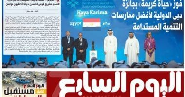 واقرأ أيضًا فى العدد الصادر غدًا:- فوز «حياة كريمة» بجائزة دبى الدولية لأفضل ممارسات التنمية المستدامة.. »مدبولى» مهنئا الرئيس السيسى: الداعم الأول لأضخم مشروع قومى لتحسين حياة 60 مليون مواطن