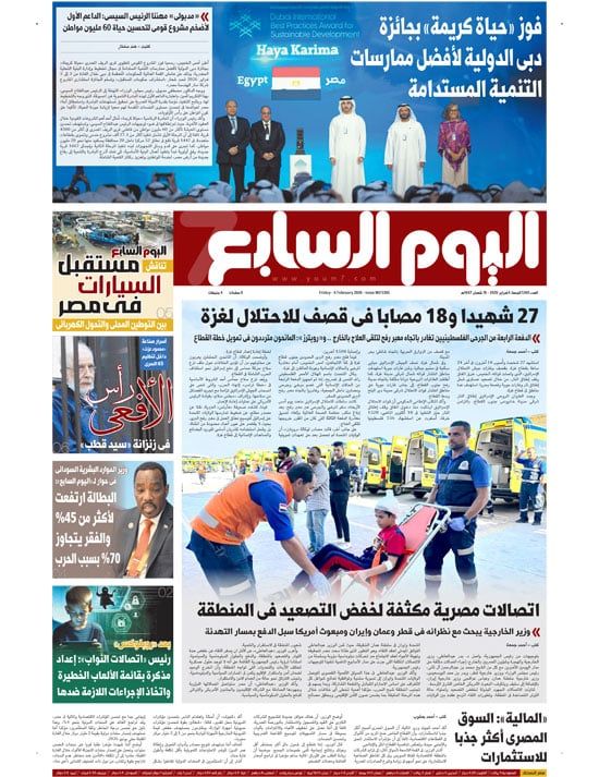 ينشر اليوم السابع فى عدده الصادر غدا الجمعة تفاصيل هامة حول العديد من الأحداث الجارية على الساحتين الداخلية والخارجية أبرزها.. 27 شهيدا و18 مصابا فى قصف للاحتلال لغزة.