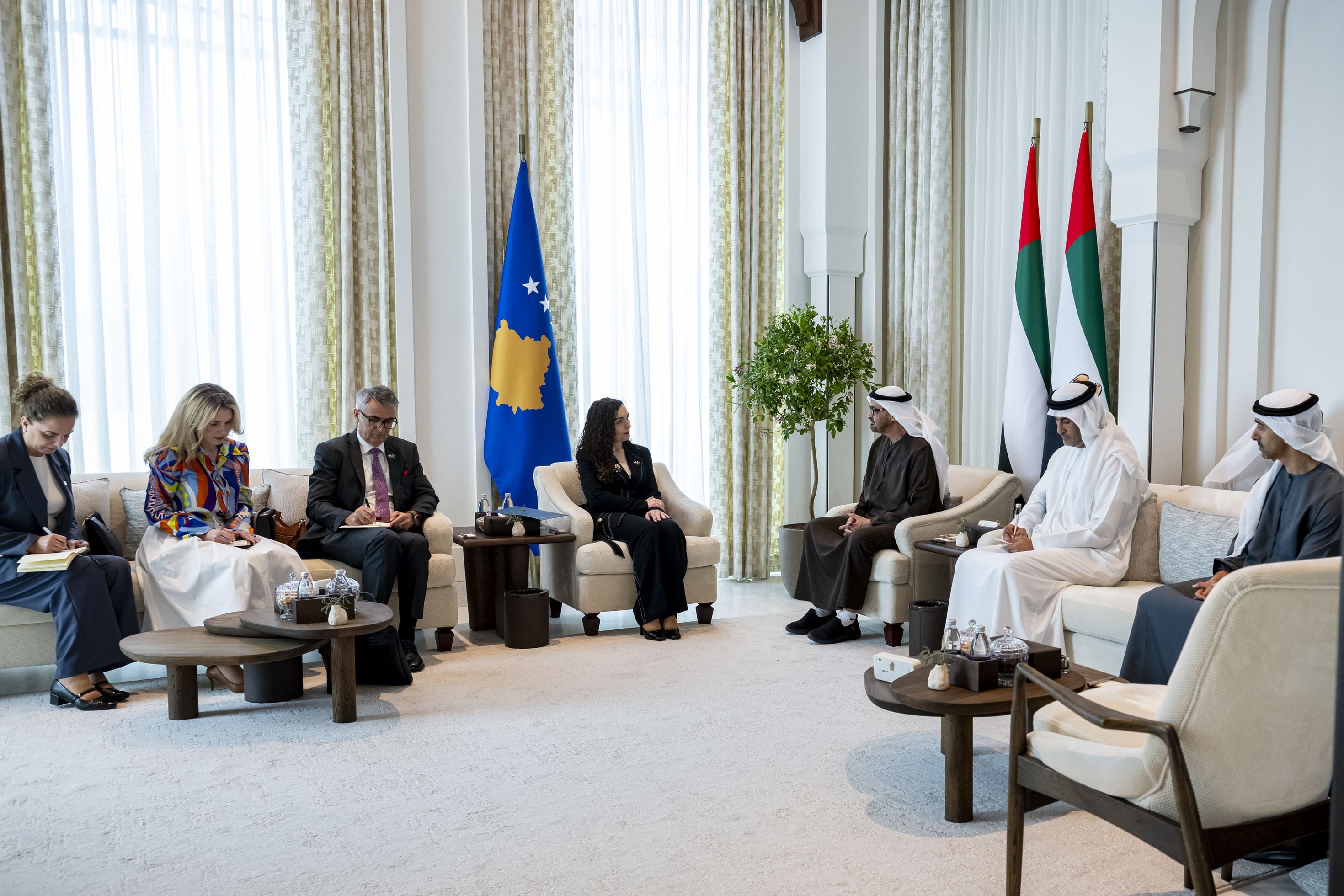 بحث صاحب السمو الشيخ محمد بن زايد آل نهيان رئيس الدولة "حفظه الله" و الدكتورة فيوسا عثماني رئيسة جمهورية كوسوفو اليوم مختلف جوانب علاقات البلدين وآفاق تطويرها خاصة في المجالات الاقتصادية والتنموية لما فيه مصلحة شعبيهما.