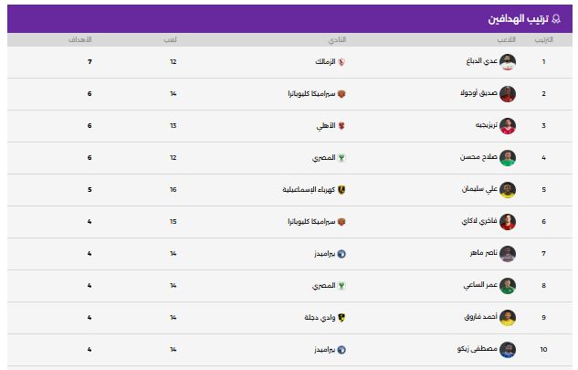 جدول ترتيب هدافى الدورى المصرىجدول ترتيب هدافى الدورى الممتاز