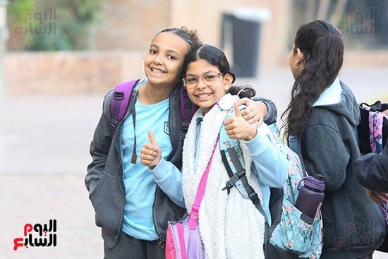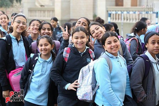 فرحة الطالبات فى بداية الفصل الدراسي الثاني
