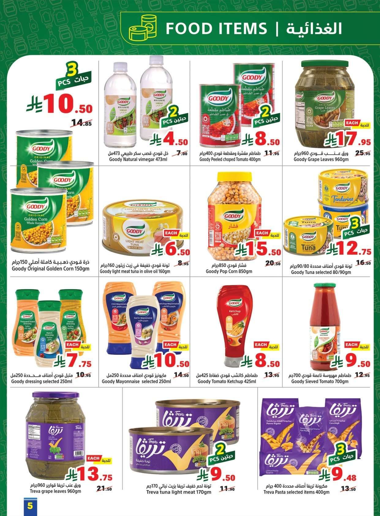 تشمل ايضا عروض متاجر السعودية اليوم علي البقوليات والحبوب والبهارات كما تتضمن القائمة منتجات معلبة متنوعة كالتونة وورق العنب والأجبان ومستلزمات الحلويات مثل كريم الكراميل والبف باستري