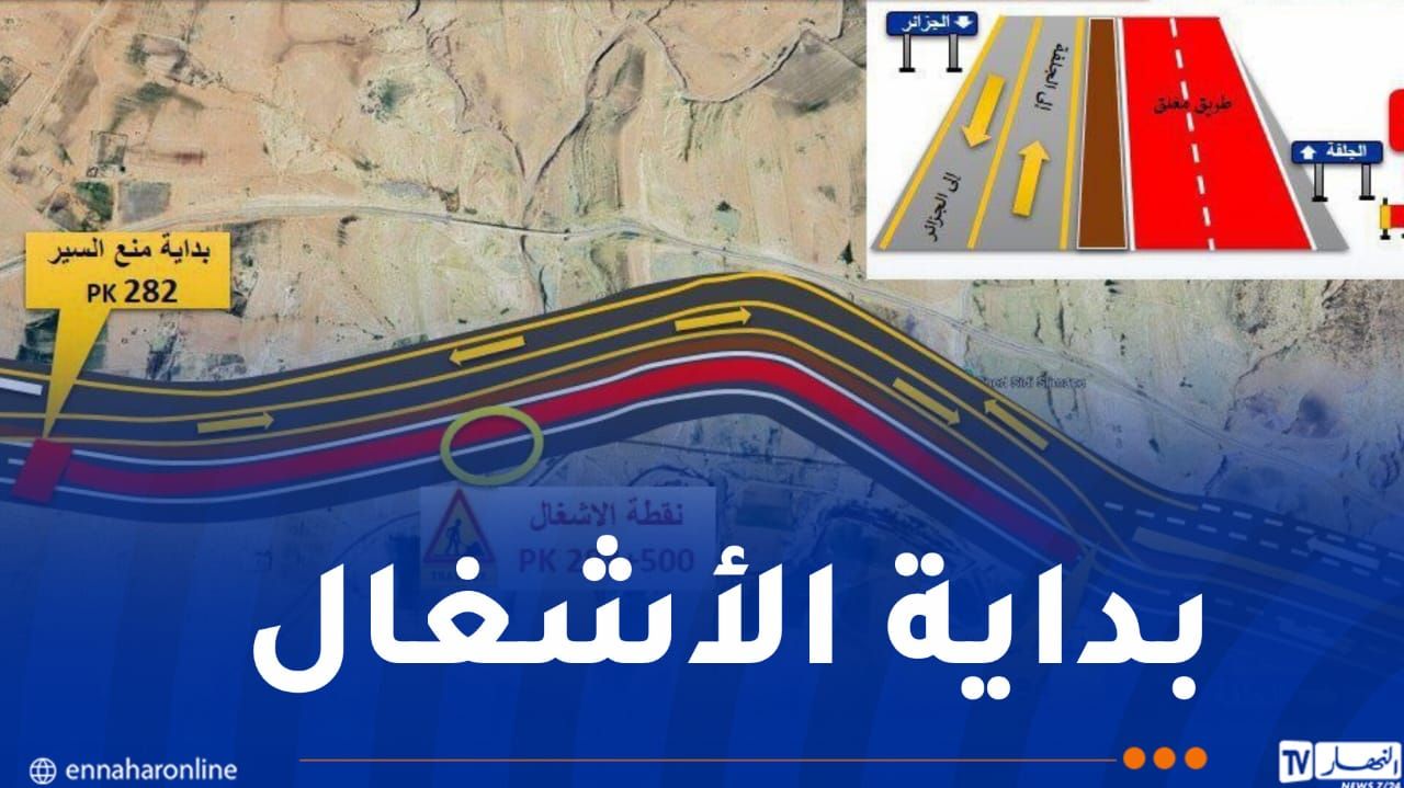 و عليه سيتم غلق طريق جهة الجزائر نحو الجلفة مؤقتًا. مع فتح الجهة الأخرى لحركة المرور في الاتجاهين على المقطع الممتد من نقطة كلم 282 إلى 284، و ذلك ابتداءً من اليوم الأحد و إلى إشعار آخر.