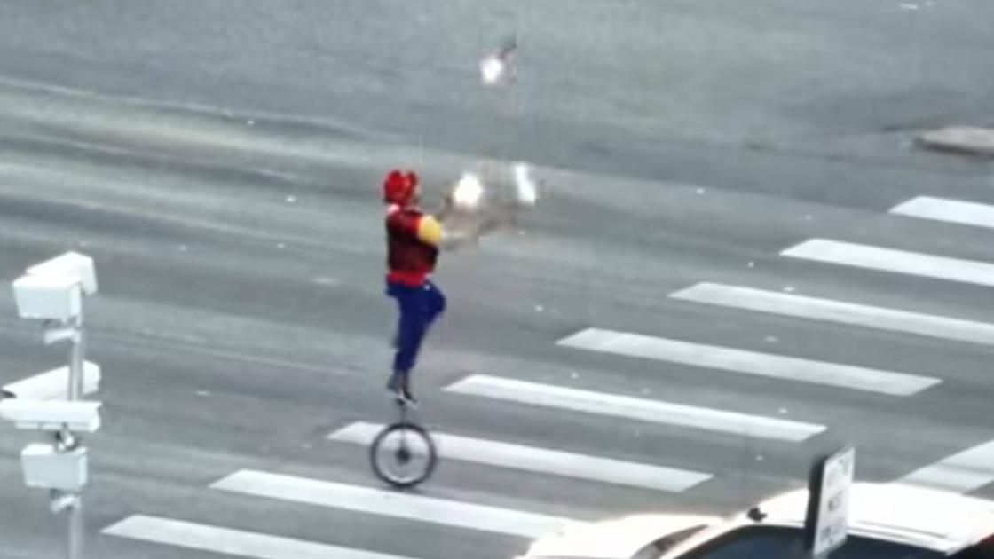وأوضحت الشرطة أن التقاطع غالباً ما يخضع للمراقبة لضمان عدم تدخل الباعة أو المشاة في حركة المرور، لكن هذه هي المرة الأولى التي يرصدون فيها راكب دراجة أحادية العجلة يؤدي عروضاً بمشاعل نارية.