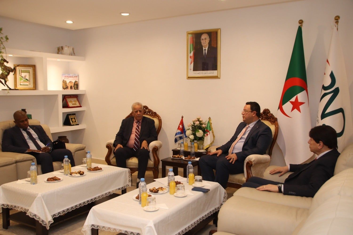كما تطرق الجانبان إلى عدد من القضايا الدولية الراهنة ذات الاهتمام المشترك. مؤكدين على أهمية التنسيق والتشاور المستمر بما يخدم المصالح المشتركة ويعزز مبادئ التعاون والتضامن بين الجزائر وكوبا.