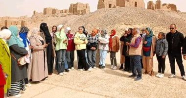 الأحد، 08 فبراير 2026 10:05 منظّمت الهيئة المصرية العامة لتنشيط السياحة بمحافظة الوادي الجديد. برنامجًا تبادليًا مجانيا للجولات التعريفية بين مركزي الداخلة والخارجة، استهدف (50) طالبًا وطالبة من المتفوقين والفئات المشمولة بالرعاية الاجتماعية بالإدارتين التعليميتين بالخارجة والداخلة، وذلك في إطار تنشيط السياحة الداخلية وتبادل الزيارات، وتنفيذًا لتوجيهات اللواء دكتور محمد الزملوط، محافظ الوادي الجديد، بتعزيز الوعي الحضاري وتثقيف الطلاب.