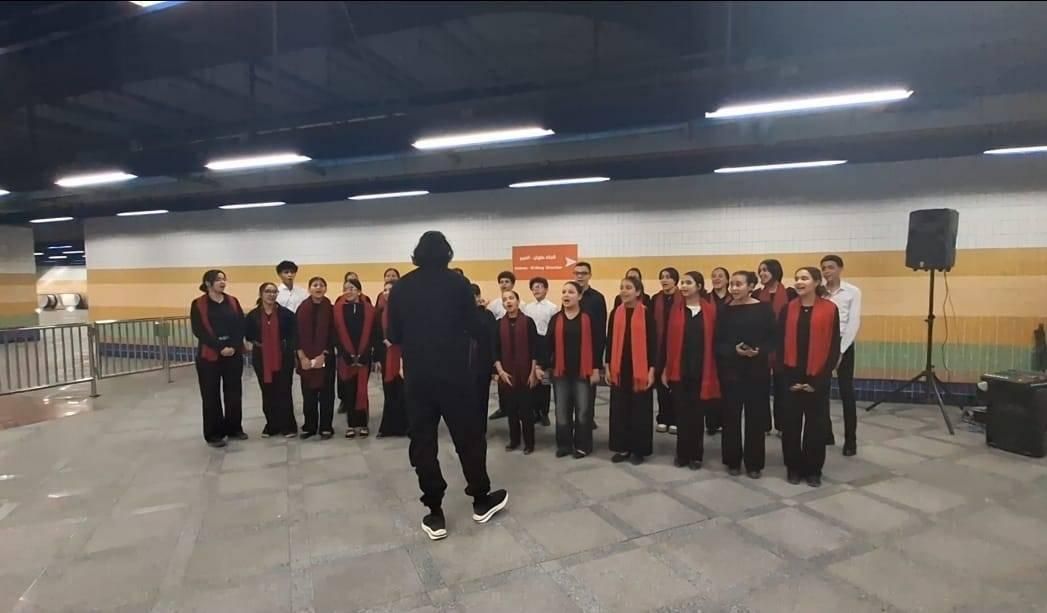 فاجأت فرقة كورال المعهد العالي للموسيقى «الكونسرفتوار»، التابع لأكاديمية الفنون، ركاب شبكة مترو الانفاق في العاصمة المصرية، بعرض فني في محطة جمال عبد الناصر وسط القاهرة، تضمن تقديم مجموعة من أبرز الأغاني المرتبطة بشهر رمضان، إلى جانب عدد من الأغاني الوطنية.