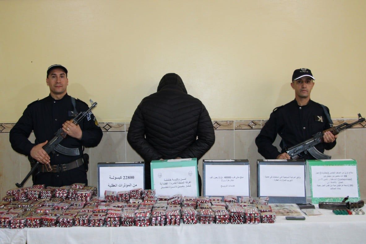 كما تم ضبط سلاح ناري تقليدي الصنع من عيار 16، إلى جانب 09 خراطيش معبأة من نفس العيار. إضافة إلى مبلغ مالي بالعملة الوطنية يُشتبه أنه من عائدات الترويج.