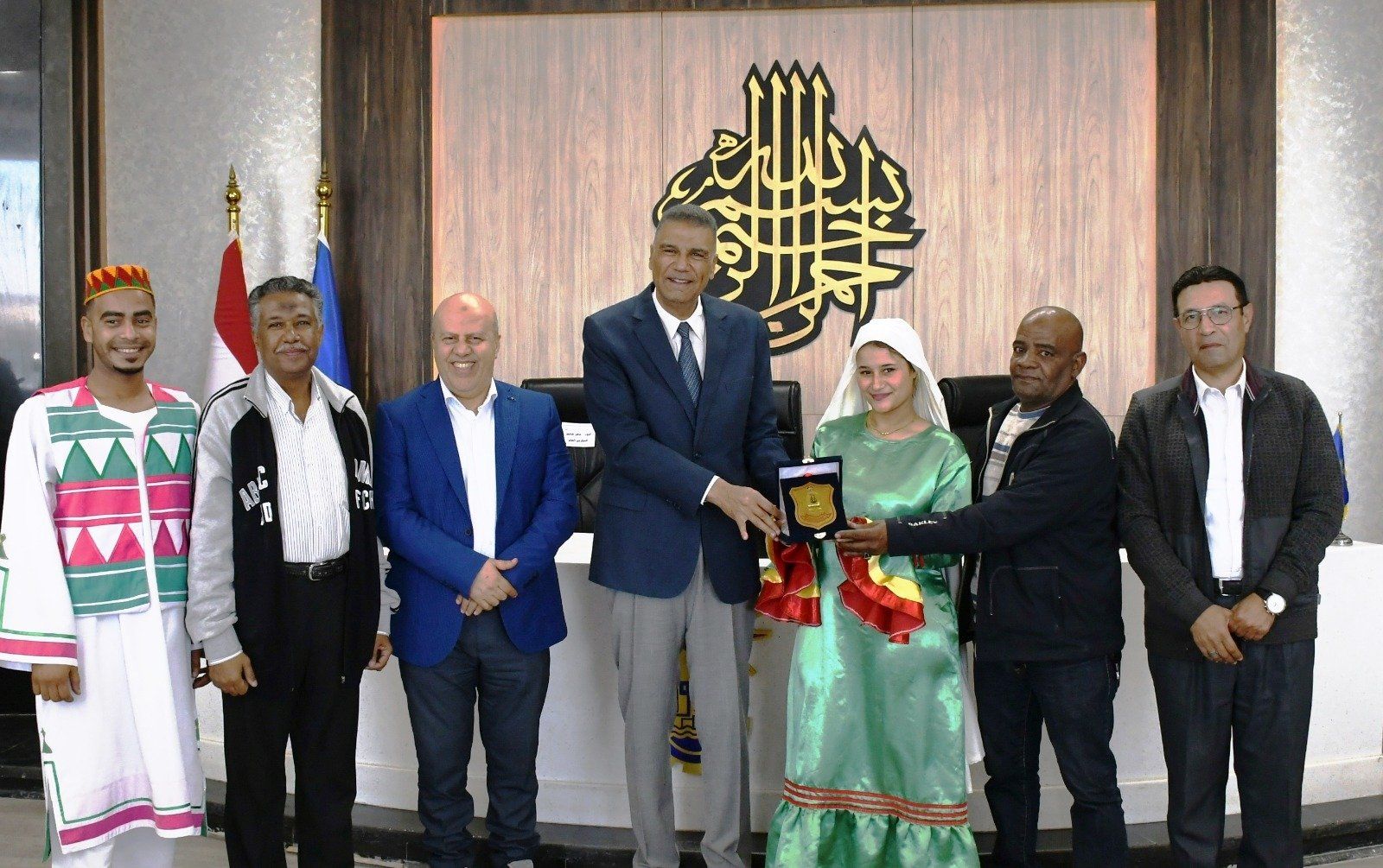 صورة تجمع محافظ أسوان بالفرق الفنية